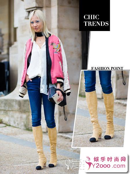 Chanel的拼色粗跟鞋2.0版的长靴也不错哦,让双腿更加修长,凹造型之余又没有过于喧宾夺主。