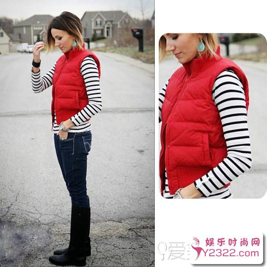 最基本又好看的羽绒背心这样穿,不觉得臃肿很简洁利落;即使不是红色这样鲜艳的款式一样能照搬穿。