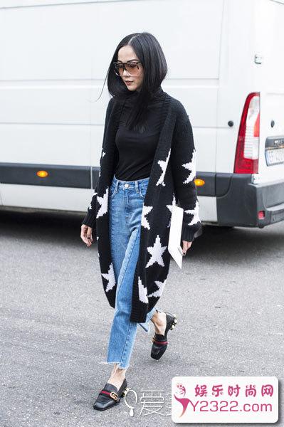 博主们很爱用它搭配牛仔裤,复古chic的味道很重~