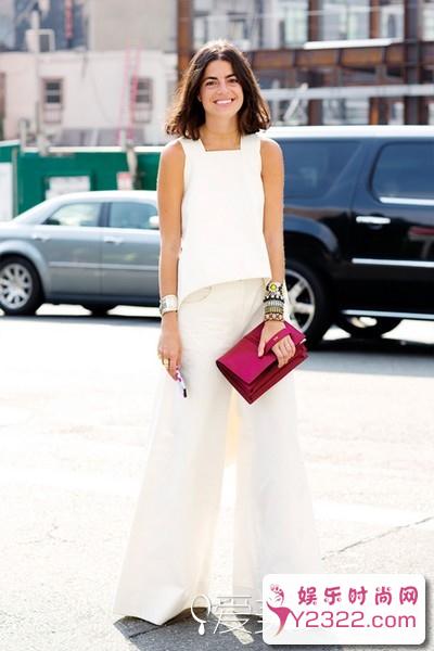 纯色背心+白色阔腿裤,只是这样的搭配难免有点无聊,但是加上亮眼的包包和民族风手镯就完全不一样了!