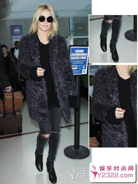 【搭配示范】:皮草大衣+破洞牛仔裤+黑色短靴