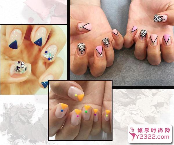 温馨提示:宝宝们在涂完三角区块之后,别忘了再上一层透明指甲油让甲面更持久、更美观哦。