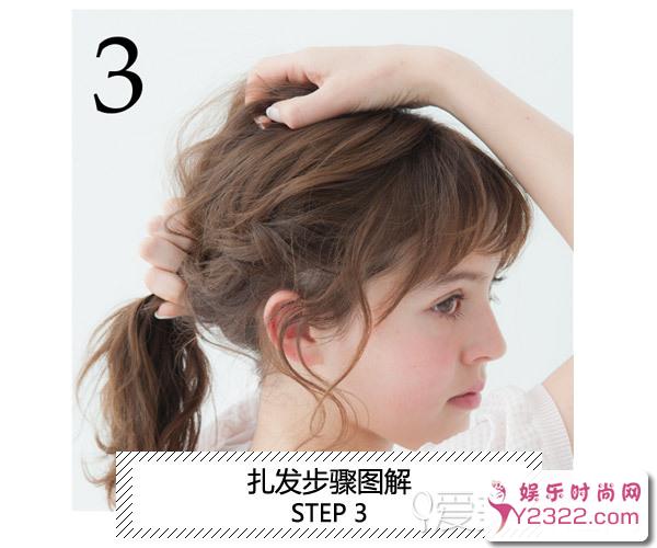 step 3:最后一只手抓住扎发位置,另外一只手从下往上抓头发,让头顶头发变蓬松丰盈,不仅增添造型气质,同时让头型变更完美。