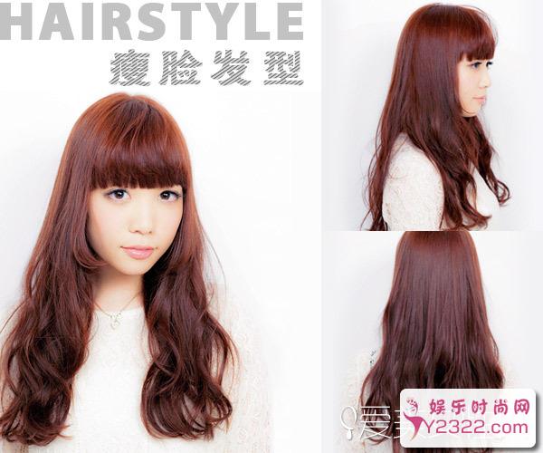 齐刘海搭配唯美的红棕色长卷发,增强了线条感,一定程度上可以修饰两颊肉肉,如果你不是大大圆脸也可以考虑这款发型哦。