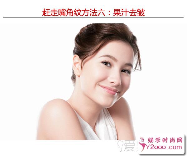 赶走嘴角纹方法六:果汁去皱。卸完妆洗干净脸以后,用西红柿汁涂擦嘴部皮肤,不仅能增加嘴部皮肤表皮细胞的水分,而且还起营养细胞的作用,从而增加其弹性。
